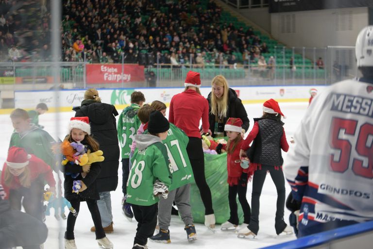 Moštvo, kjer igra tudi slovenski reprezentant Anže Kuralt, je na tivolskem ledu tokrat slabo začelo tekmo, že v 3. minuti sta bila hkrati izključena dva igralca, toda Olimpija te velike prednosti ni izkoristila. A hitro so bile priložnosti pozabljene, v 9. minuti je Olimpija povedla, po zadetku Marcela Mahkovca, ki je v gol pospravil odbitek, pa so sledili sijajni prizori – pravi pravcati 'dež' plišastih igrač, ki jih bo klub s Celovške 25 podaril v dobrodelne namene.
