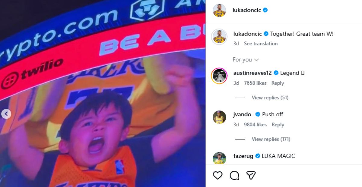 Po izjemni zmagi Los Angeles Lakersov na domači tekmi z Denverjem je ogromno pozornosti (poleg odličnega Luke Dončića, ki je tekmo v podaljšku odločil v zadnjih sekundah) požel tudi mladi navijač, ki so ga med tako imenovanim 'tekmovanjem' za navijača dneva pokazali na velikem zaslonu.