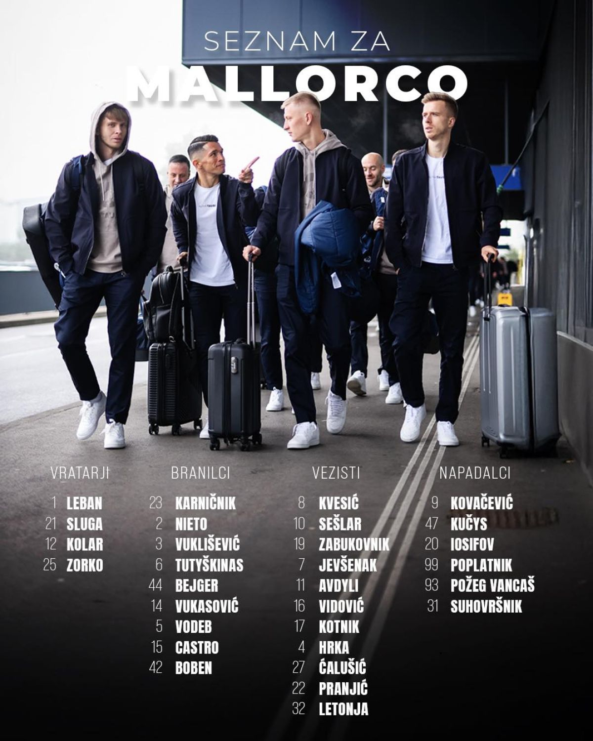 Zadnji so končali jesenski del sezone, zadnji bodo začeli priprave na spomladanske izzive. Ampak dnevi brez skupnih treningov so zdaj za celjskimi nogometaši, ki so kakopak že dalj časa vadili samostojno in uresničevali natančno določen program dela strokovnega vodstva. Danes se bodo znova zbrali in nemudoma tudi zapustili knežje mesto. Kot bi ob načrtovanju priprav slutili, da bo zima na sončni strani Alp pokazala zobe, odpravili se bodo na toplo Majorko. V domače okolje Alberta Riere torej, ki ga zaradi tega na zboru ne bo. Ker se ne bo vračal v Celje samo zato, da bi takoj spet odpotoval nazaj, svoje varovance bo pričakal na prizorišču priprav. Med njimi bosta poleg treh okrepitev - Svit Sešlar, Ivan Ćalušić, Jakov Pranjić - tudi Žan Karničnik in Mark Zabukovnik, ki okrevata po poškodbi, vratar Simon Sluga in Armandas Kučys sta znova nared za največje napore.