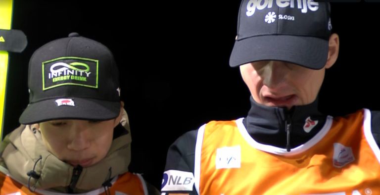 Slovenec in Japonec, ki sta - tako kot Rjoju Kobajaši - tudi v prostem času prijatelja in se družita izven skokov, sta pozabila na rivalstvo, najprej sta se nasmejana pozdravila, potem pa je režiser prenosa ujel, kako sta bila sredi globokega razmišljanja in analize, verjetno sta na zaslonu spremljala razmere po prvem dnevu tekmovanja.