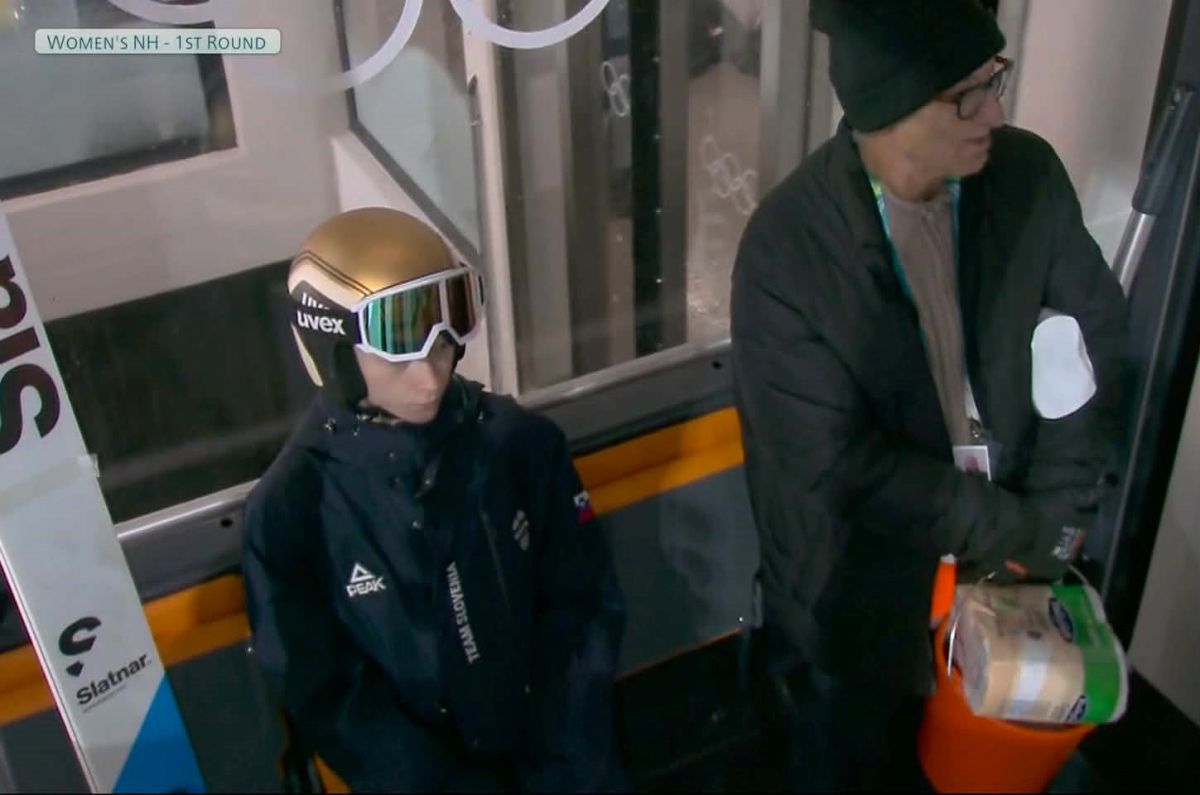 Trajalo je manj kot pol sekunde, preden je režiser spoznal, kako bizaren je prizor. A bilo je dovolj, da so ljudje v tukajšnjem medijskem središču ustavili sliko in se začeli strašansko zabavati. Bilo je, ko so Niko z novo vzpenjačo vozili na vrh skakalnice za nastop v prvi seriji. V kabini pa ni bila sama in tudi ne v družbi še kakšne tekmovalke. Tam je bil še gospod, ki ga resnično ne bi pričakovali.
